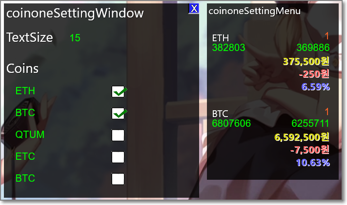 텍스트 사이즈와 보여줄 코인, 갯수를 변경할 수 있습니다